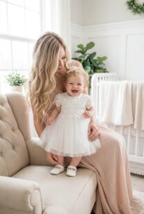 The Leah Dress is a timeless white gown featuring delicate lace layered over a soft lining for comfort and elegance. Intricate lace on the bodice and sleeves creates a romantic silhouette, while a sweet bow tie at the back adds...