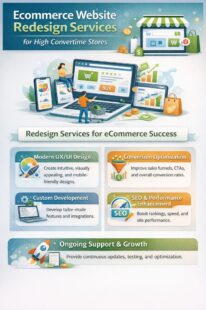 Speed and SEO-focused ecommerce website redesign services optimize site structure and performance. Redesign efforts include improving load times, reducing unnecessary code, and organizing content for search engines. These changes support better crawlability and user engagement. Businesses use speed and SEO...