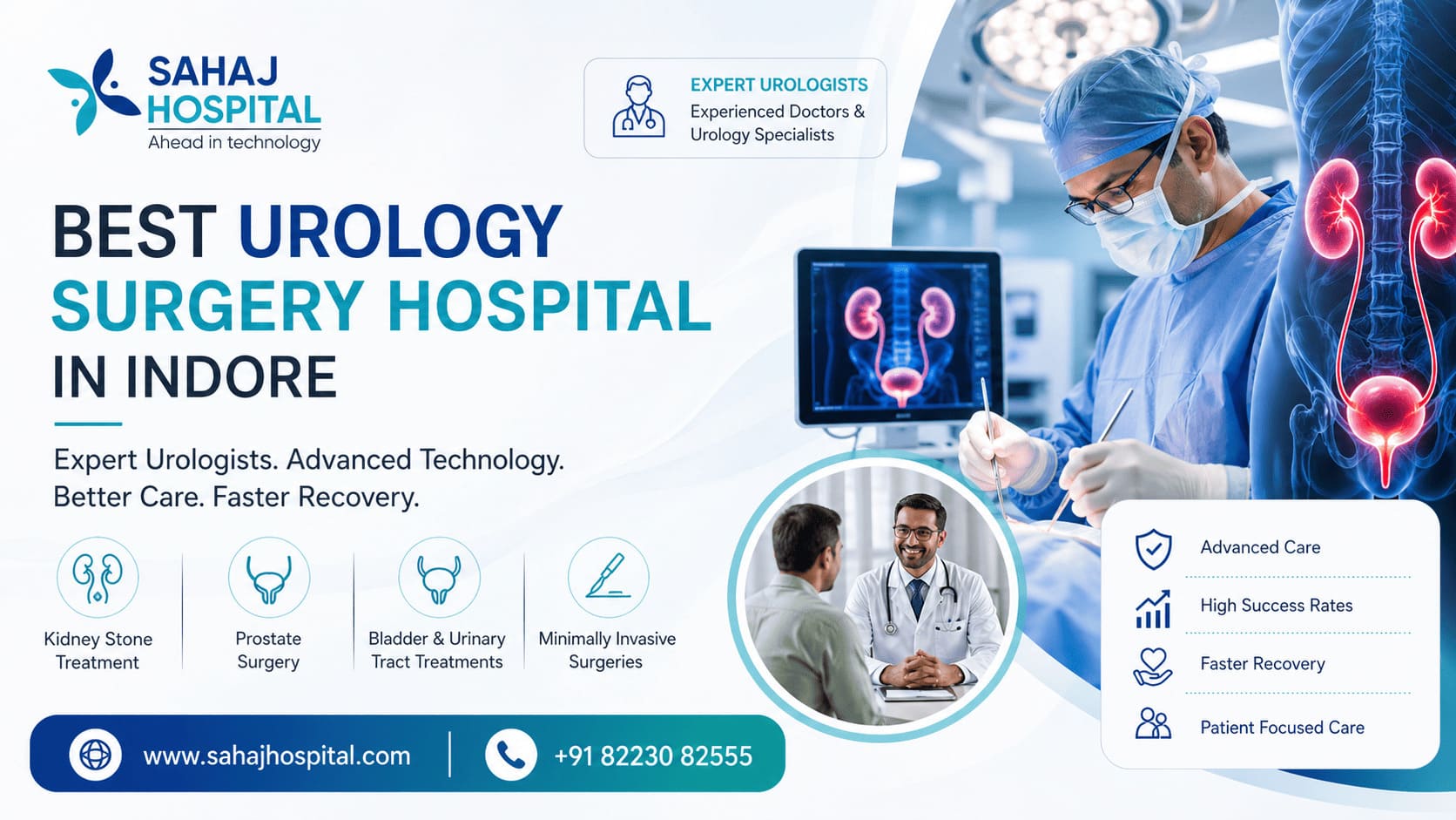 Looking for the best urology surgery hospital in Indore? Choose a center backed by experienced urologists and skilled specialists who provide advanced and patient focused care. From kidney stone treatment and prostate surgery to bladder and urinary tract procedures, the hospital offers safe treatment with minimally invasive techniques and faster recovery. With expert doctors, accurate diagnosis, modern technology, and dedicated post surgery support, patients receive reliable and effective urology care with high success rates.