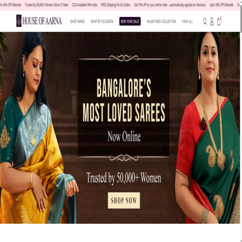 Shop beautiful sarees online at House of Aarna. Explore silk, cotton, festive & designer sarees with free shipping and COD across India.