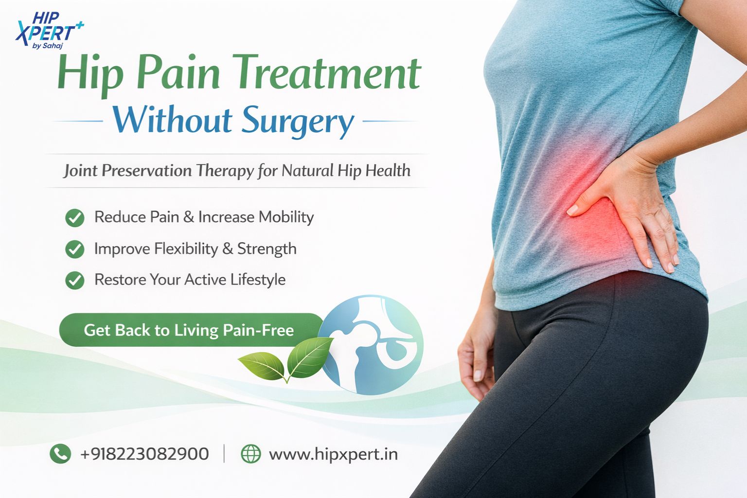 Discover hip pain treatment without surgery through advanced physiotherapy and targeted exercises. Joint preservation therapy focused on protecting your natural hip joint and improving mobility. Reduce pain, improve flexibility, and move toward a healthier, pain-free life.