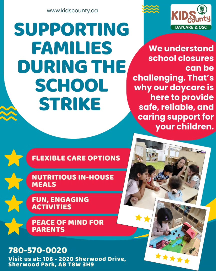 At Kids County, we’re more than a day care in sherwood park — we’re a second home. Our goal is to create a safe, caring space where children feel loved, confident, and excited to learn. From babies to school-age kids, each program is designed to match their stage of growth, helping them explore, make friends, and discover new skills through play. Our teachers build close, trusting relationships with every child and family, and our in-house chef prepares fresh, healthy meals each. Located in Sherwood Park, Kids County is a warm community where kids can laugh, grow, and thrive.